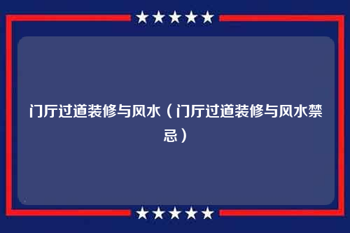 门厅过道装修与风水(门厅过道装修与风水禁忌)