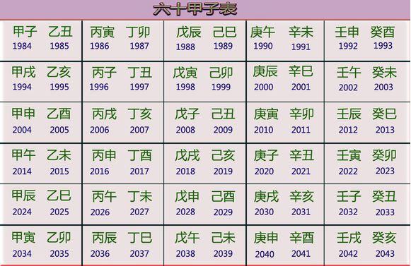 六十甲子出生年对照表
