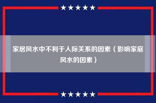 家居风水中不利于人际关系的因素(影响家庭风水的因素)