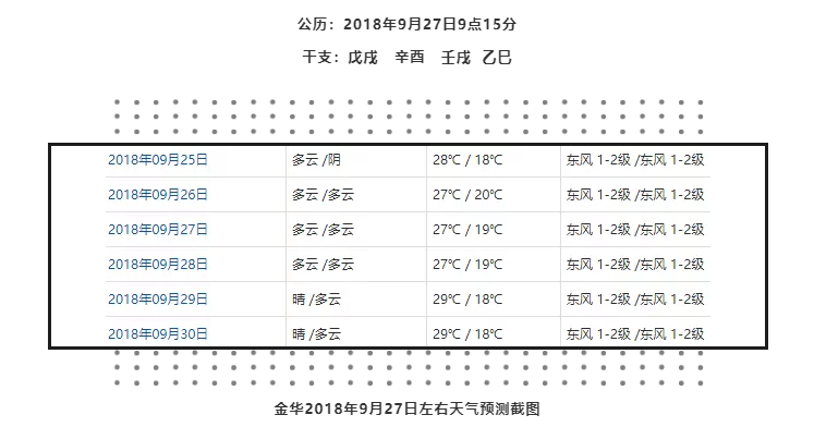 金华2018年9月27日左右天气预测截图