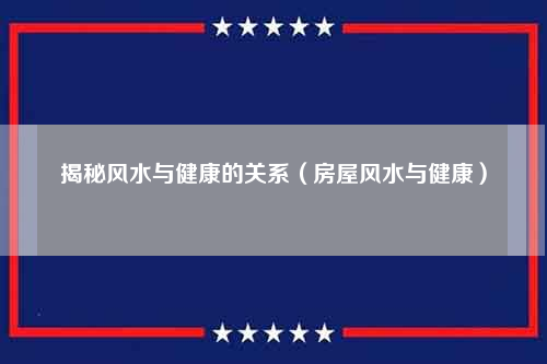 揭秘风水与健康的关系(中医与风水)